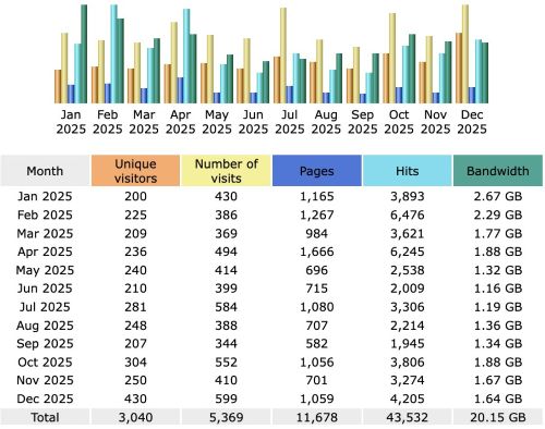 Negli anni (dal 2020 al 2025) il sito web della BaGAV è stato visitato da un numero crescente di visitatori che scaricano un numero sempre più elevato di file.